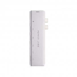 PEPPER JOBS TCH-MBP7 is a dual USB-C 3.1 to USB 3.0 hub with 4K HDMI output, PD passthrough charging port, SD & TF card readers, USB-C data port and TB3 5K video/data passthrough capabilities. The two USB 3.0 and USB-C data ports allow you to connect your USB devices to the laptop, the TF & SD card readers allow you to access the external memory..